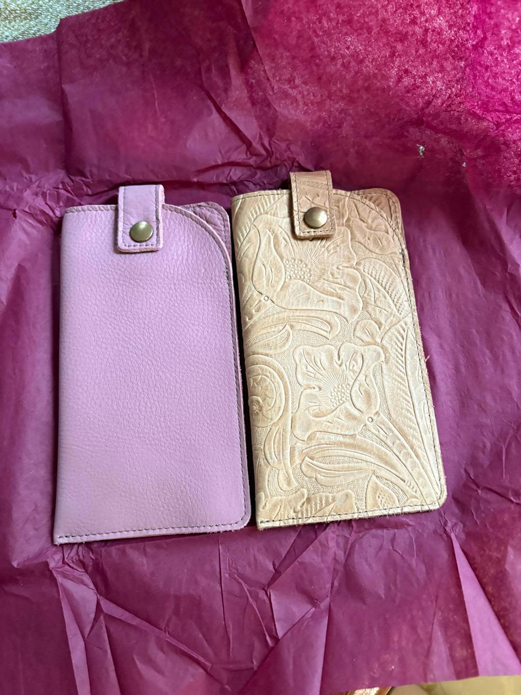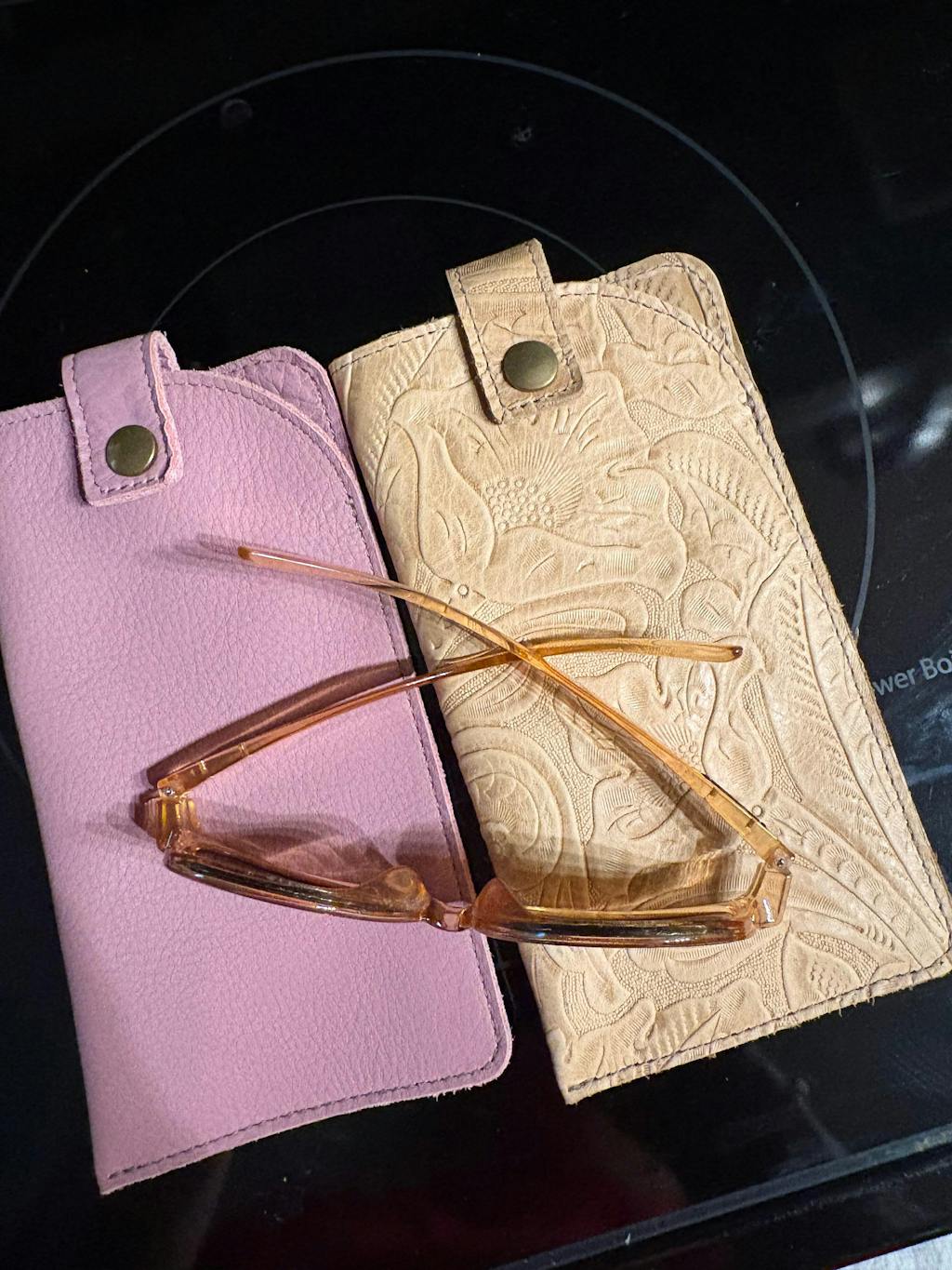 Love these cases and the two colors- Guava and Western Floral. They are the perfect size for my glasses and/or sunglasses. Colors are gorgeous! Guava is a favorite of mine and Western Floral is a new favorite. The leather is beautiful and soft. I love the design of Western Floral leather it’s gorgeous. These cases fit easily in my Nikki, Jenne, all BC bags.