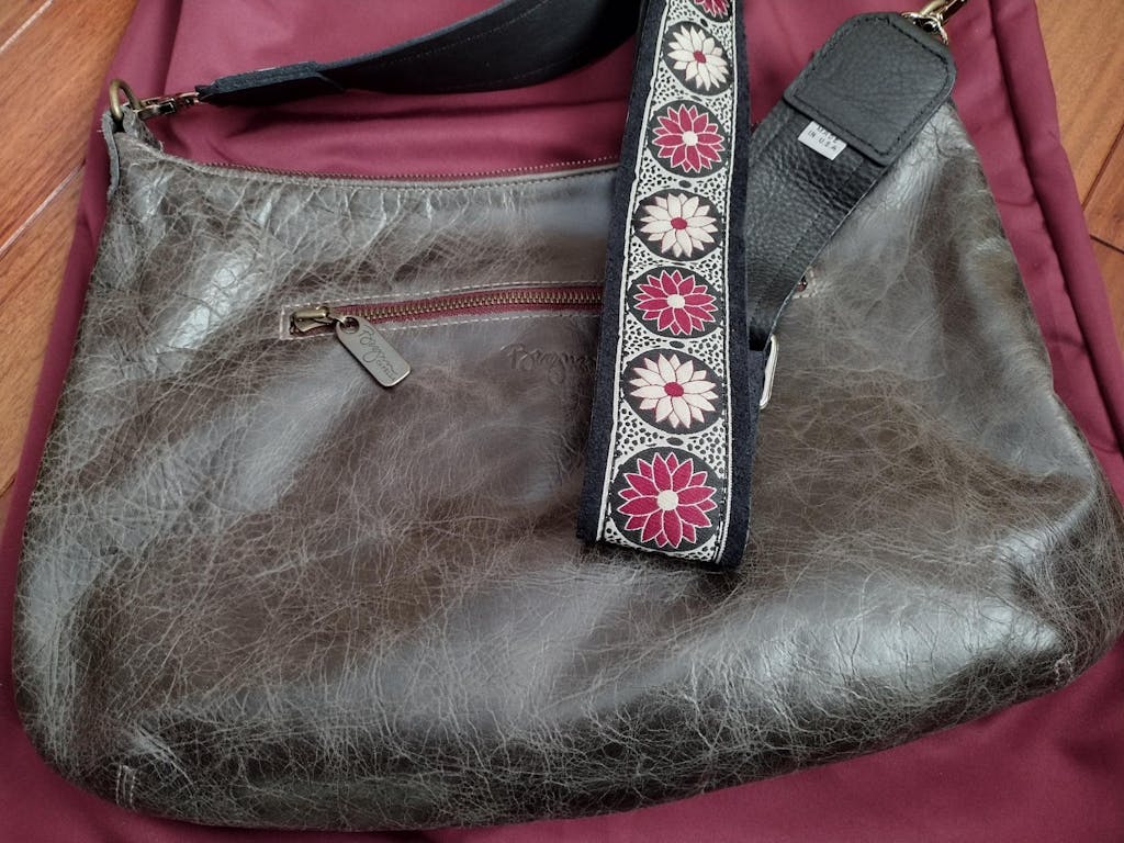 I love the unique pattern, it’s adjustable, and the thick strap is easier on my shoulders.